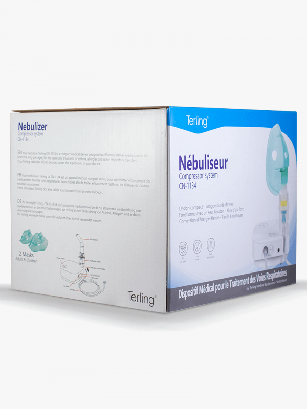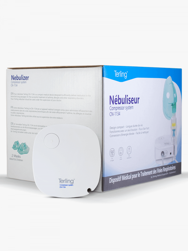 Le nébuliseur Terling® CN-1134 est un appareil médical compact, silencieux, s’adapte pour toute la famille, conçu pour administrer efficacement les médicaments dans les voies respiratoires bronchiques afin de traiter efficacement l'asthme, les allergies et d'autres troubles respiratoires.